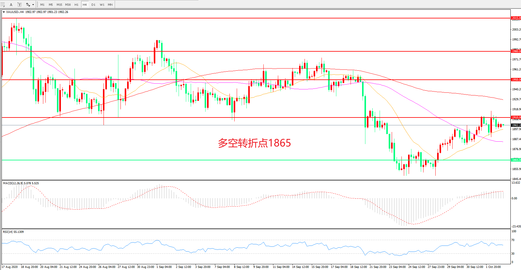 多空转折点:1865.00