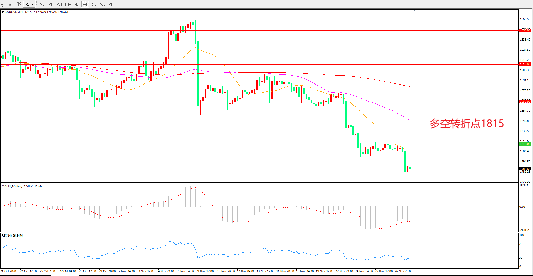 交易策略:在1815.00之下看跌,目标1766.00 1705.00