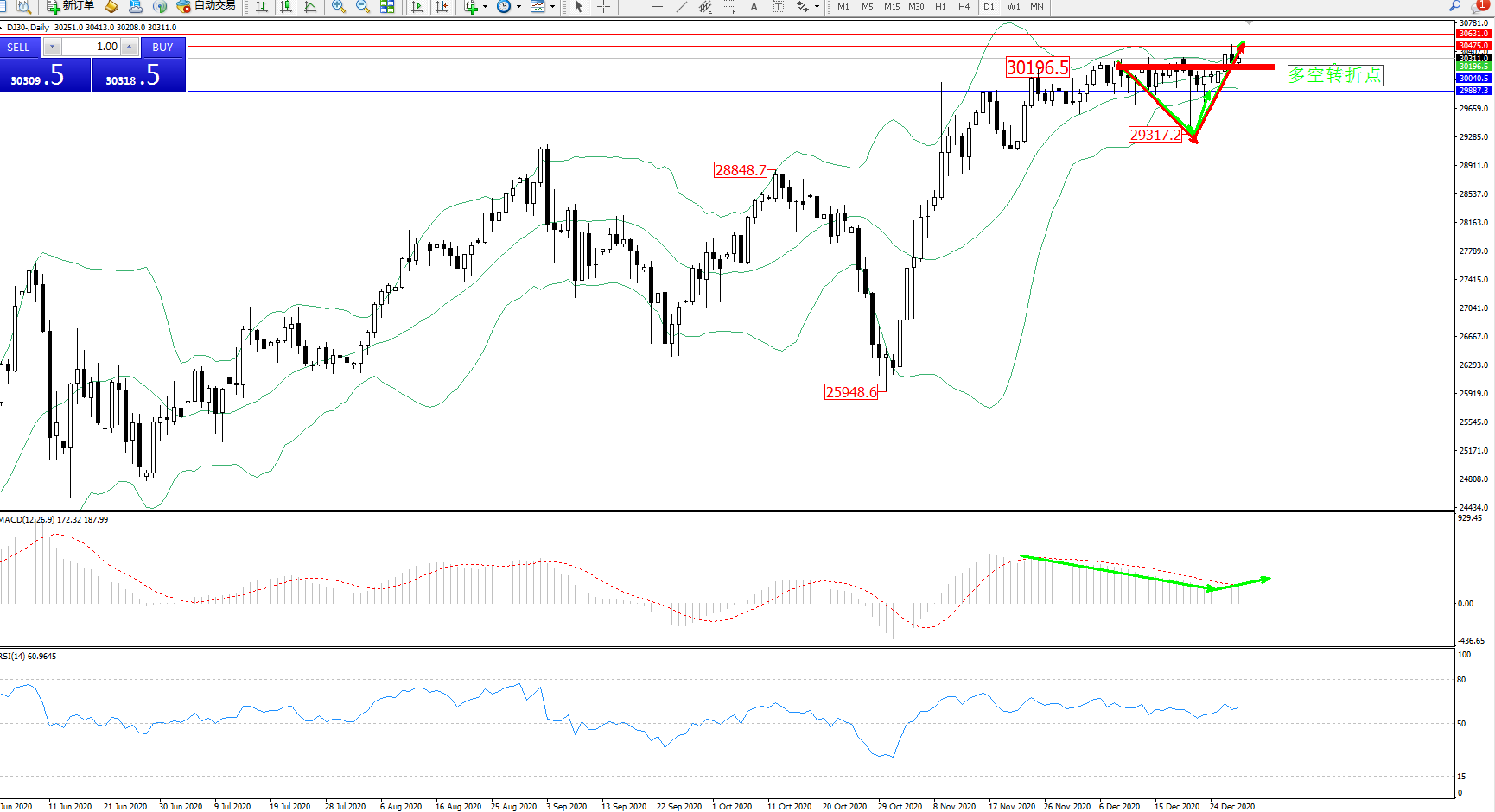 道琼斯指数12月30日(周三)收盘上涨73.90点,涨幅0.24%,报30409.56点。美国股市收盘上涨,小型股跑赢大盘。汽车制造商成为表现最好的板块之一,罗素2000小型股指数上涨约1%,创下近两周以来的最大涨幅。由于本周适逢假日,市场交投清淡,随着主要经济体对新冠病毒的群体免疫力逐渐增强,全球增长开始显著改善,大多数机构都料2021年美元走软。面对负面的疫情形势,投资者仍在评估刺激方案所带来的希望,市场已经消化了2021年将出现的大量积极解决方案。美国财政和政治形势也没有给美元带来多少好处,预计美国将批准2000美元支票发放,民主党也很可能会在佐治亚州的选举中赢得参议院的两个席位,这将使民主党获得对国会的控制权。