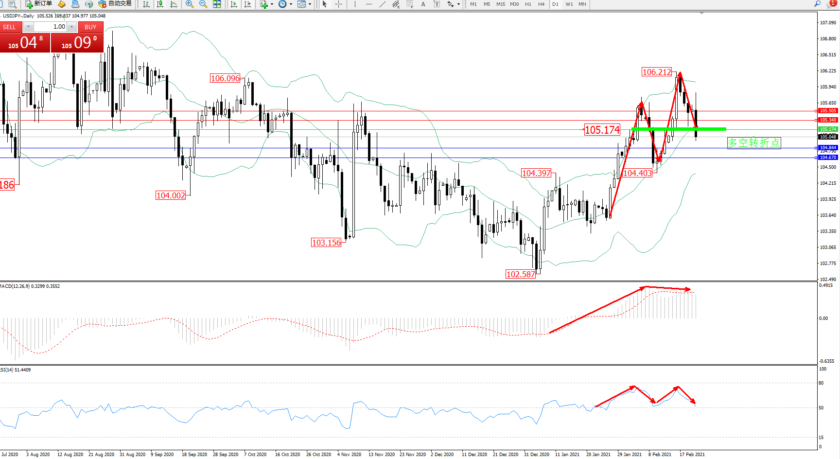 美元兑日圆高位急速回撤至105.048附近震荡,随着近期风险反弹消退,美元兑日元汇率可能在106日元附近面临阻力。在美国刺激措施、疫苗分发和美债收益率走升之后,外汇市场正在经历头寸调整不过,美元依然受到支撑,因为美债收益率仍高企;在美国刺激措施真正实施之后,乐观情绪将会减弱,而且如果围绕疫苗对新冠变异毒株有效性的质疑再度浮现,乐观情绪亦会减弱。全球市场风险情绪随着疫情进一步消退的趋势而继续升温,令避险日元资产重新遭到抛售;日本央行提供1200亿日元的10-25年期国债购买;日本央行提供300亿日元的25年期国债购买。