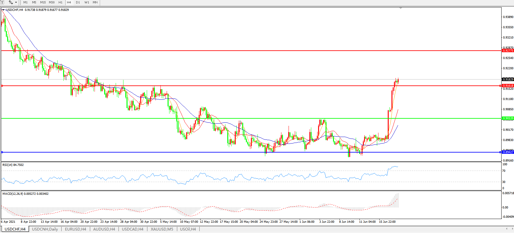 美元兑瑞郎USDCHF    4小时图: