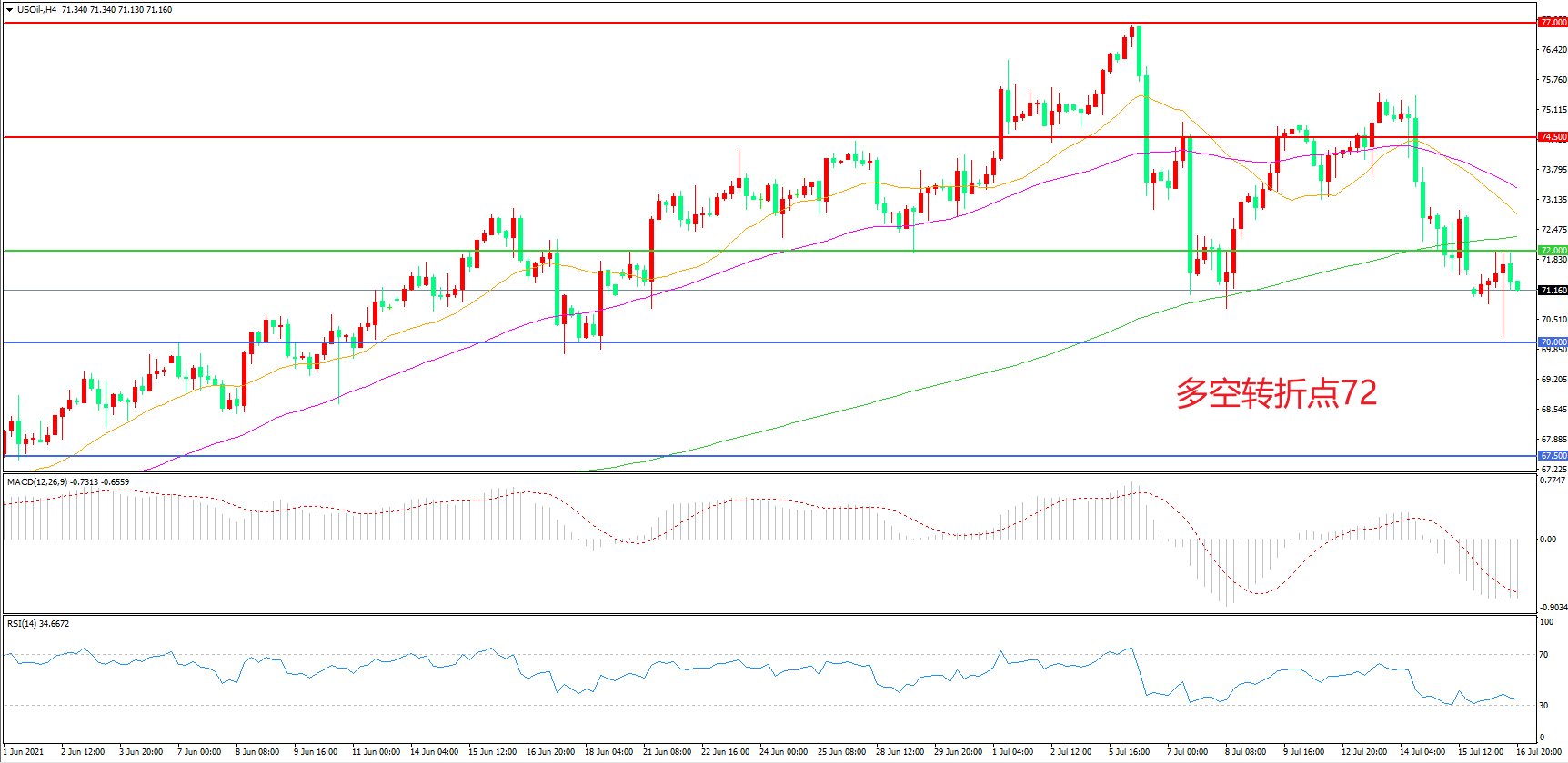 交易策略:在72.00之下看跌,目标70.00       67.50