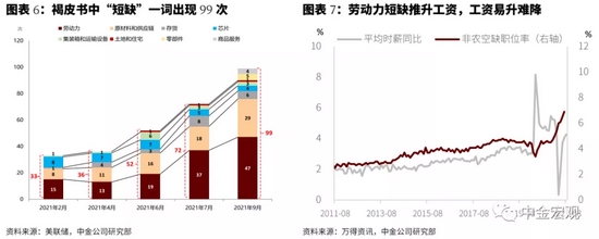 其次,在供给收缩的背景下,PPI对于CPI或具有一定的前瞻指导意义。我们一直强调,疫情冲击本质上是供给冲击,疫情反弹可能降低供给效率,加剧短缺,使价格向下游传导更容易。美联储周三发布的9月褐皮书显示,美国企业仍面临各种短缺。其中,劳动力、原材料、供应链短缺仍是最主要的供给约束,且较7月调查时不但没有改善,反而有所加剧。这或意味着,即使疫情反弹压制需求,供给侧的通胀压力仍可能继续存在。