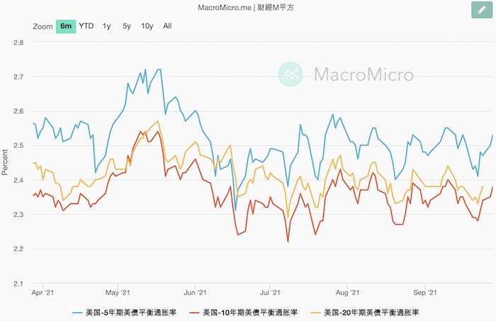 美国8月核心PCE同比增长3.6%,远超美联储2%左右的目标值。根据9月议息会议发布的经济预测概述,美联储将2021年、2022年和2023年核心PCE通胀上调至3.7%、2.3%和2.2%,6月时的预测为3%、2.1%和2.1%。近期,油价逼近80美元/桶的高位,今年天然气批发价格上涨250%,自8月飙升70%,升至七年新高。欧美国家电价普遍同比大涨超100%,“能源危机”导致通胀持续的预期升温,也推升了美联储按时紧缩的预期。
