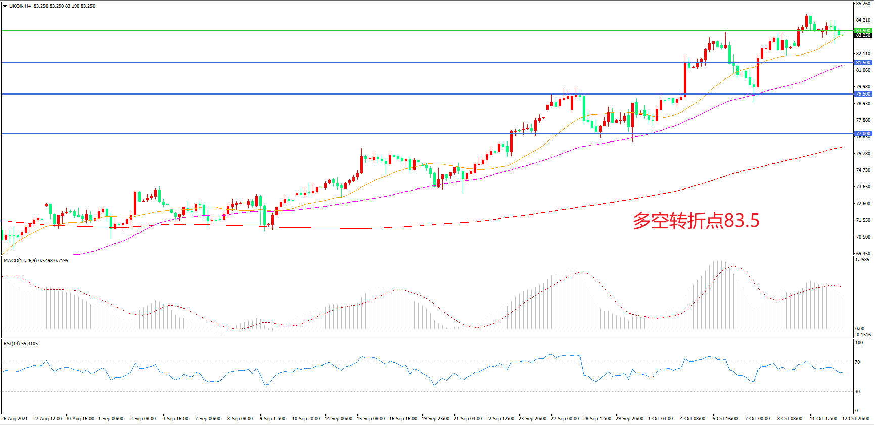 周二(10月12日),随着全球能源危机的阴霾持续扩散,市场对冬季能源短缺的担忧加剧,,各投行纷纷预测油价将升至90关口,布伦特原油延续强势表现,收报83.25美元/盎司。目前最大的变数来自美国,拜登政府此前已经呼吁沙特阿拉伯及其盟友国向全球市场提供更多原油,如果油价继续飙升,美国可能会要求OPCE成员国增加原油产量,以减缓石油价格的飙升速度。