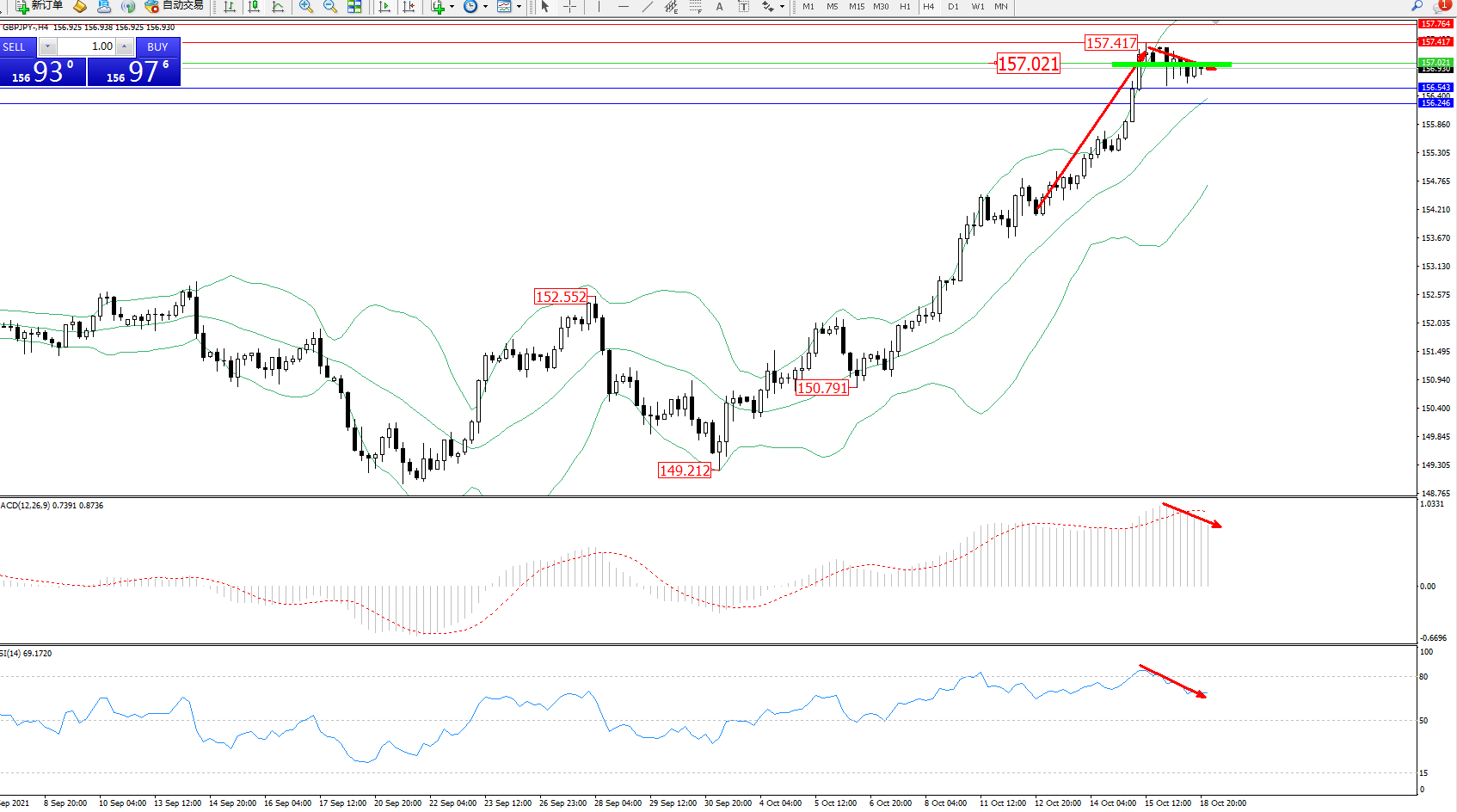 技术点评:多头动力延续布林带指标中上轨区间持续震荡上扬,高位抵达157.417位置后开始整理平移,布林带指标呈收口走势中,MACD指标处于多头区域维持弱势徘徊下行,RSI指标处于多头区域开始缓慢下移;