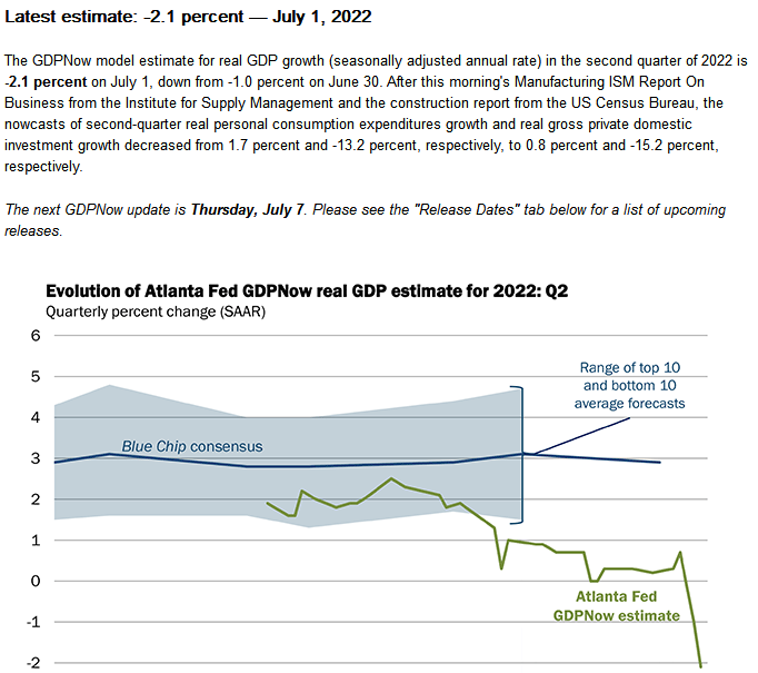 美国商务部数据显示,一季度美国GDP终值下滑1.6%,较二读数据下修0.1个百分点。而亚特兰大联储GDPNow上周更新显示,第二季度美国GDP将萎缩2.1%。如果成真,美国经济将陷入技术性衰退。施罗斯伯格向记者表示,今年晚些时候或明年初的轻微衰退“正在成为共识”,“市场担心的是,美联储可能走得太远,引发新一波失业潮并重挫经济。”