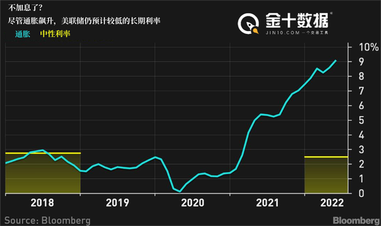 虽然美联储6月份发布的最新经济预测摘要显示,决策者对长期联邦基金利率的预期中值为2.5%,然而,在美国整体通胀率为9.1%的情况下,几乎没有理由认为中性利率会低于2018年12月的水平,当时美联储结束了上一轮加息周期,决策者预计的中性利率为2.75%,通胀率则在2%左右。