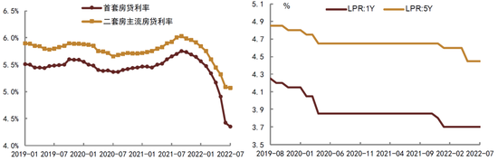 图表2:新发房贷利率降至历史低位(左);银行下调LPR动力不足(右)