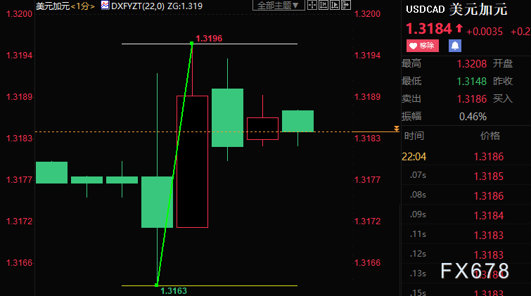 加拿大央行如期加息75个基点,美元兑加元波动近35点