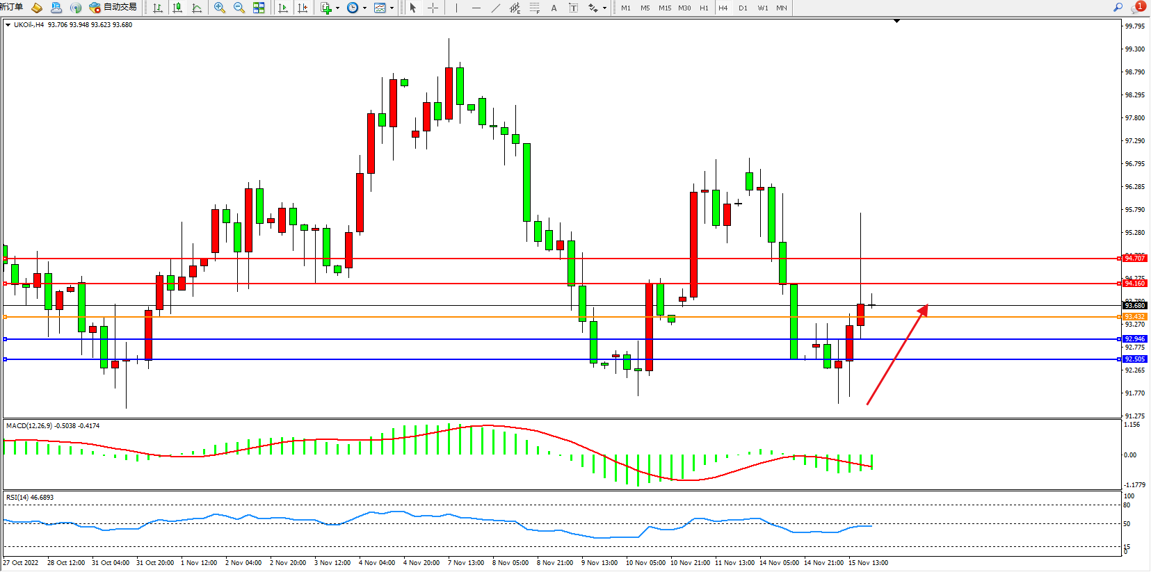 布油维持93.432附近震荡,中国10月份规模以上工业增加值年率下降,社会消费品零售总额年率意外收缩,这是全球能源需求前景疲弱的最新迹象。OPEC自4月以来第五次下调2022年全球石油需求增长预测,理由是高通胀和利率上升等经济挑战日益严峻。