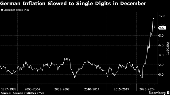 德国12月份通胀放缓速度超预期,此前政府为一些家庭支付了当月的燃气费,暂时缓解了该国的生活成本危机。