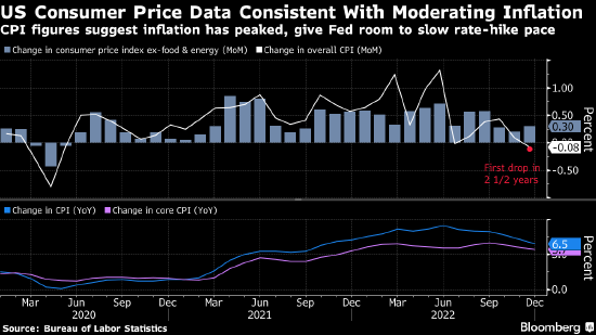 美国12月份通胀继续放缓,进一步证明物价压力已经见顶,并使得美联储有望再次放慢加息步伐。