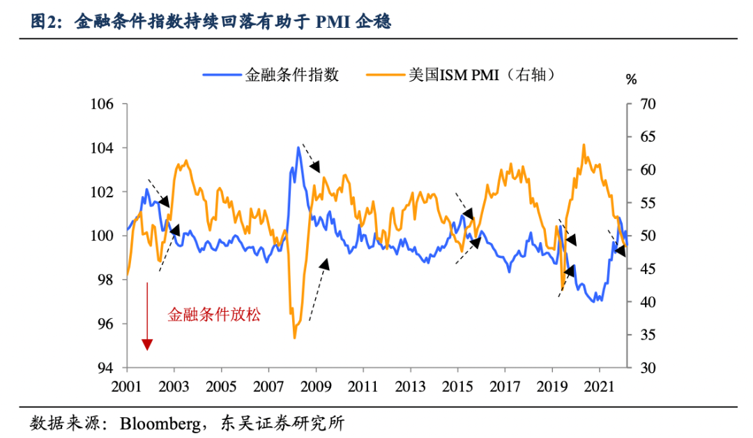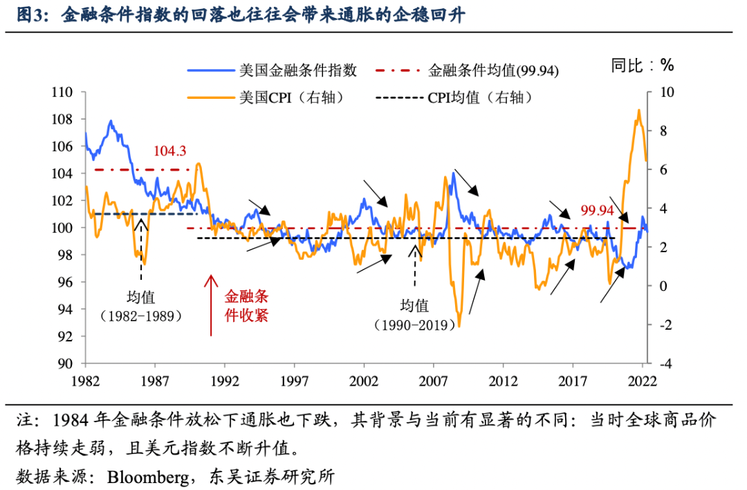 金融条件需要警惕输入型宽松。2023年的特殊之处在于,中、欧经济复苏的预期逻辑下,美元指数将被外部因素驱动走弱,推动金融条件向宽松变动,为了对冲这一输入型宽松,除了政策转向要极其谨慎外,引导相对紧缩不足的股市和信用债市场调整可能是重要的手段。