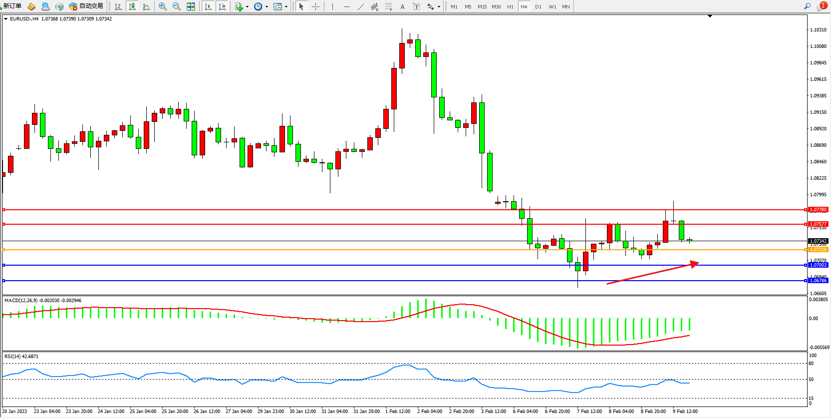 交易策略:1.07335上方看涨,目标1.07577、1.07780