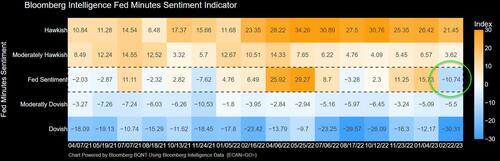 总体而言,彭博社的情绪模型显示,此次的会议纪要较上一次的更加鸽派,这是至少两年来最鸽派的纪要。该纪要公布后,美股三大股指小幅走低后反弹,道指一度涨0.3%,纳指一度涨0.8%,标普500指数一度涨0.5%。