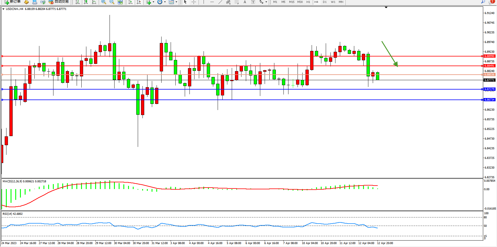 USDCNH:震荡下移 USDCNH  HKDCNH