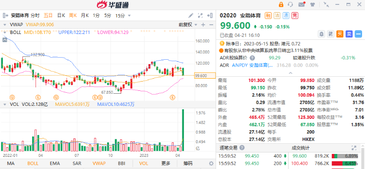 在过去两年,传统体育用品市场亦出现结构性的变化,市场集中度稍有下降。主因是小众运动风潮的兴起,国民健康意识也渐见提升,多元化的健身方式蓬勃发展。造就消费者对品牌差异有更高的要求。令到小众运动品牌成功走入大衆视野而抢占份额。可于现价99.60港元附近买入,中长线可见143港元,跌穿87港元止蚀。