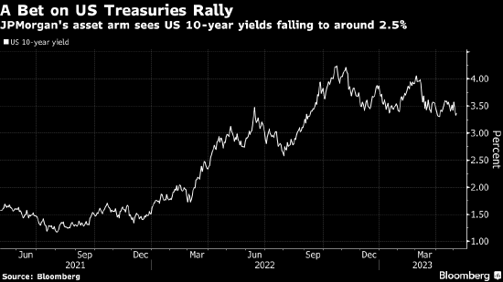 摩根资产管理利率投资组合经理Jason Davis表示,随着通胀达到“拐点”、经济迈向衰退,债券势将走强。该公司管理着2.5万亿美元的资产。他预计10年期美债收益率在未来几个月将跌向3%,然后在美联储降息后降至2.5%左右。