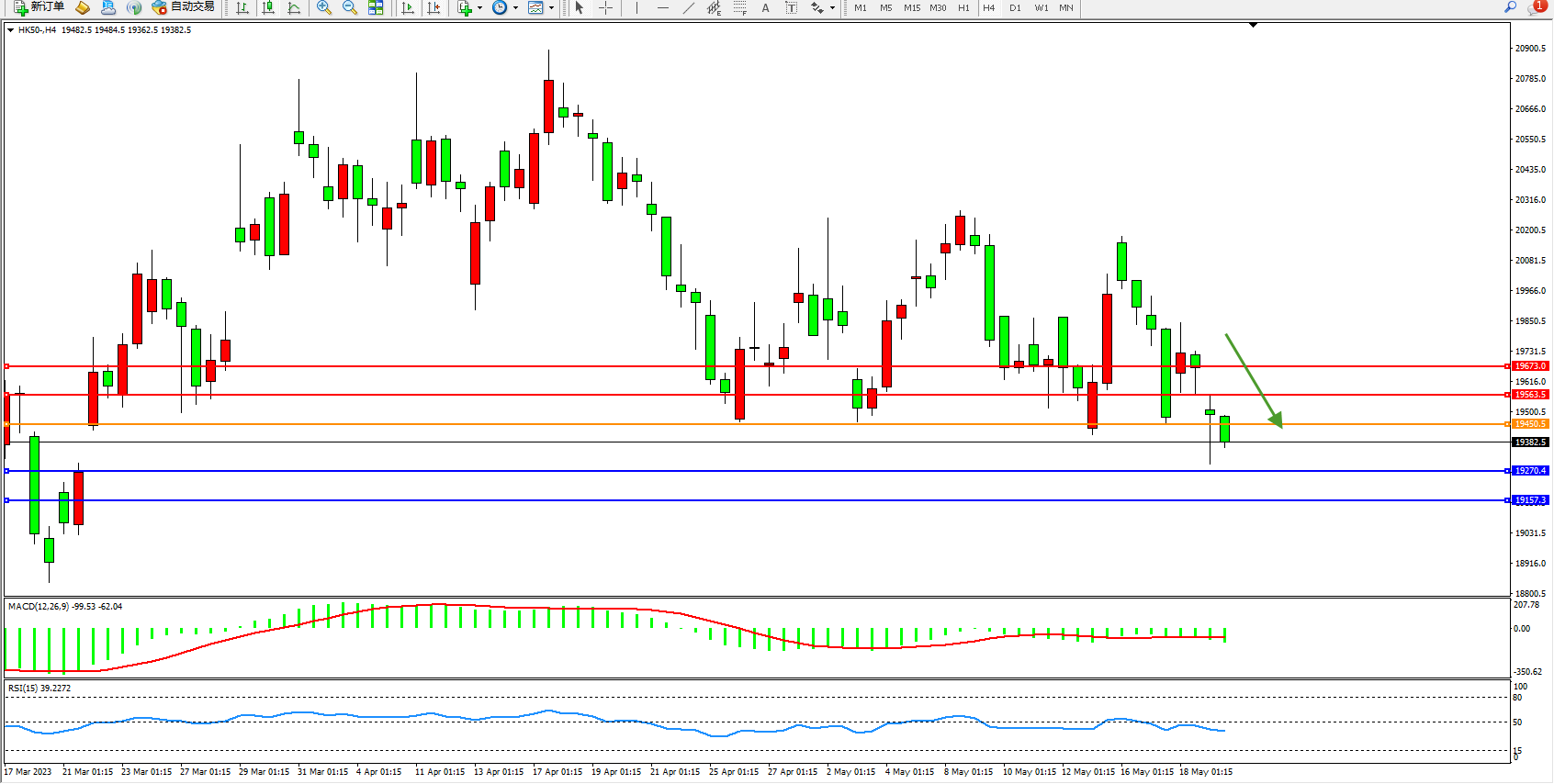 香港恒生指数5月19日(周五)收盘下跌276.68点,跌幅1.4%,报19450.57点;港股尾盘跌幅进一步加大,恒生科技指数一度跌近3%刷新日低,最终收跌2.43%,恒指、国指分别下跌1.4%和1.81%,恒指下挫276点。,受美股中概股下跌影响,港股科技股全线下跌,阿里巴巴绩后跌6%,快手、百度、京东跌超4%,香港特区政府刊宪公布最新一期政府账目,特区政府财政司司长陈茂波经行政长官批准,增拨50亿港元专门款项,用作维护国家安全开支。南下资金全日净流入10.74亿港元,大市成交额为952亿港元。