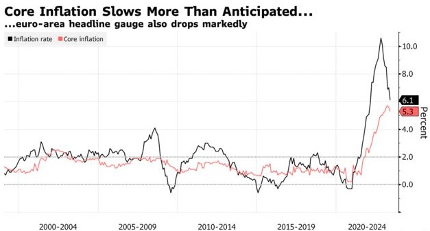 在欧洲大陆的民众正在艰难应对严重生活成本危机的情况下,欧元区通胀的放缓将受到政界人士和货币政策制定者的欢迎。但核心通胀的顽固性质意味着,尽管德国最近陷入衰退,金融危机仍在发酵,欧洲央行官员仍计划继续加息。