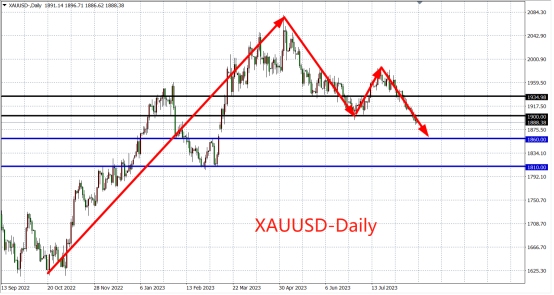 鉴于美国国债收益率接近本周期的最高水平,杰克逊霍尔全球央行会议将成为美债走势的重要指引。对于黄金,如果鲍威尔在讲话中表现出坚定的鹰派语气,从而引发人们对美国利率将在更长时间内保持较高水平的押注,金价可能继续下跌;然而,如果鲍威尔传达出更加谨慎和鸽派的立场,这有可能推动金价重返并1900美元关口之上。
