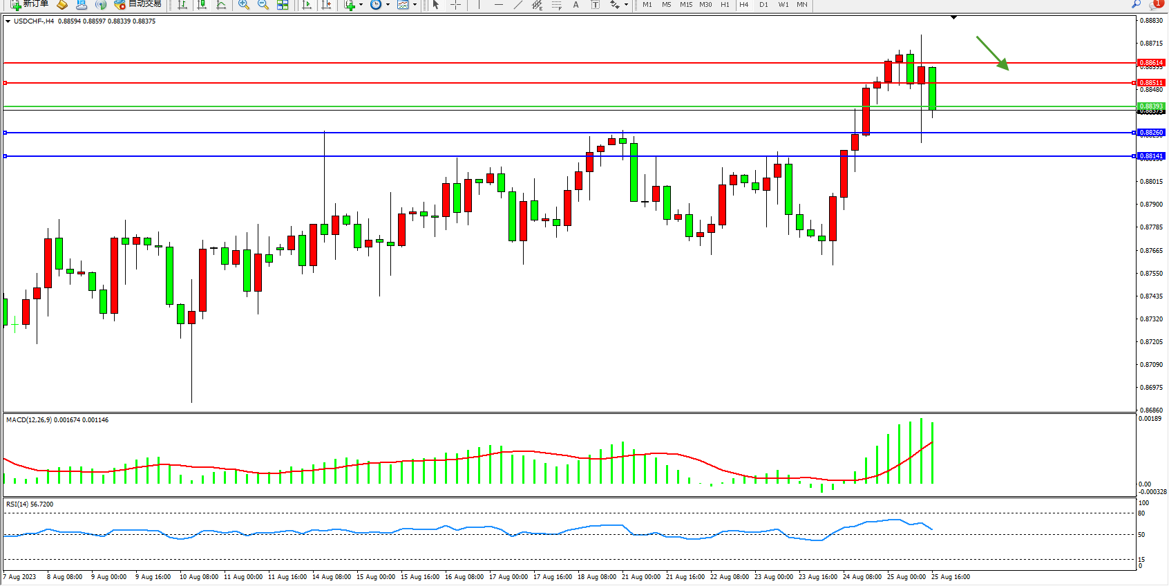 交易策略:0.88393下方看跌,目标0.88260 0.88141