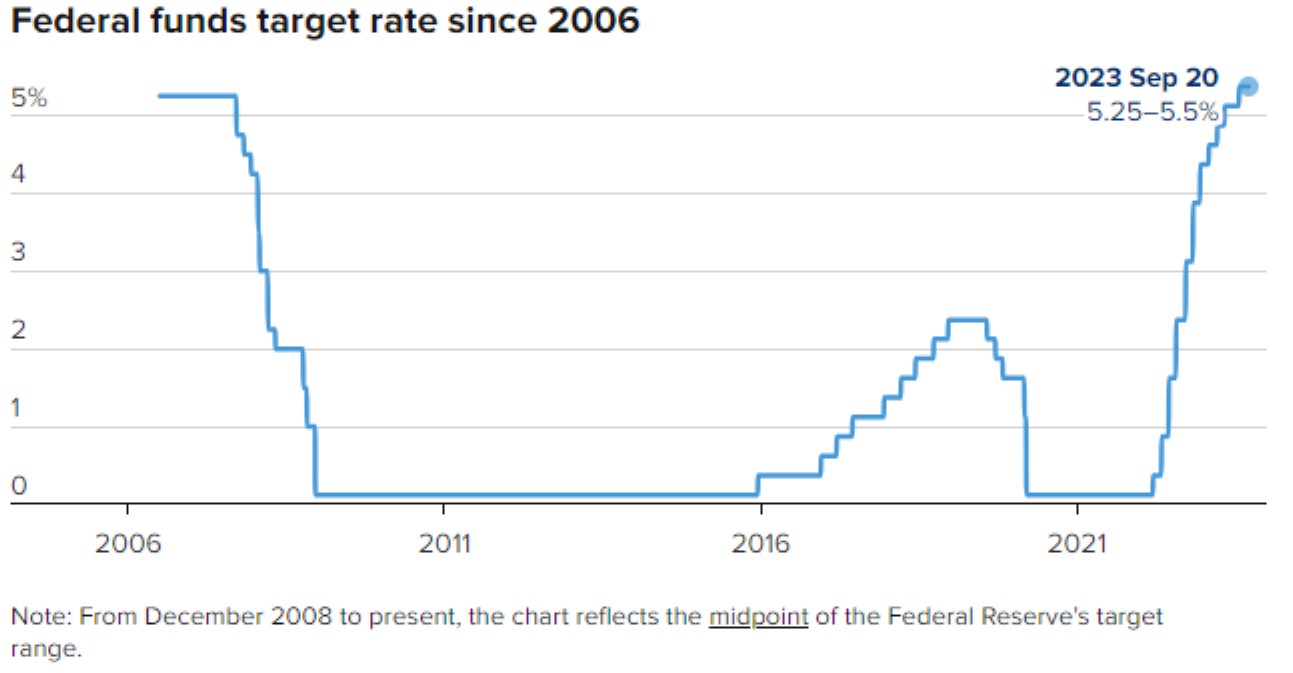 北京时间9月21日凌晨2点,美联储如期宣布将利率维持在5.25%-5.5%的目标区间,该行同时还表示,仍预计在年底前再加息一次,明年的降息次数将少于之前的预期。