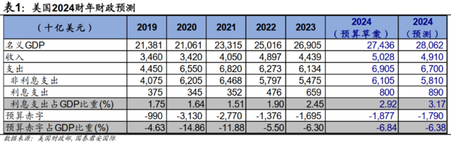与此同时结构上,付息债(一年以上)的规模将大幅增加。从2023年的1万亿美元增加到1.8万亿美元。从占GDP的约4%提升到约7%。