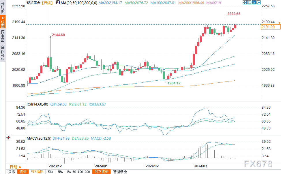 北京时间18:18,现货黄金价格报2191.76美元/盎司,涨幅0.61%。