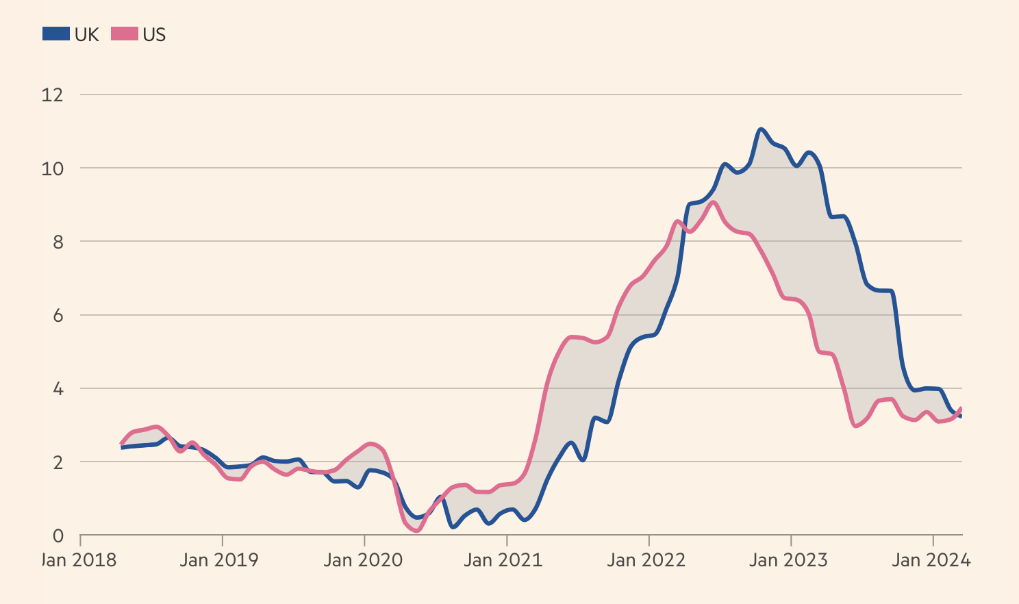 然而,上个月英国通胀率仍高于欧元区,后者降至 2.4%,也是2021 年以来的最低水平。