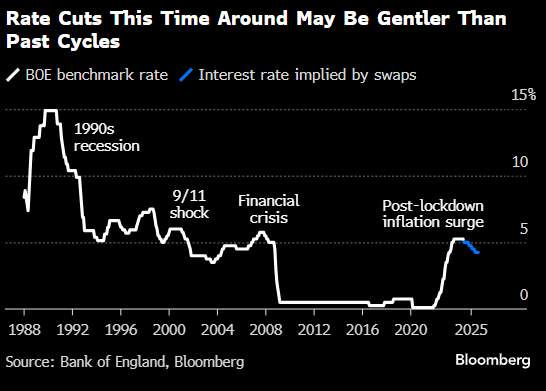 这轮周期的不同之处在于,它会发生于经济复苏,而非经济低迷时期。周五的官方数据显示,英国经济从温和衰退中反弹,季度增速创下新冠疫情结束以来最高水平。